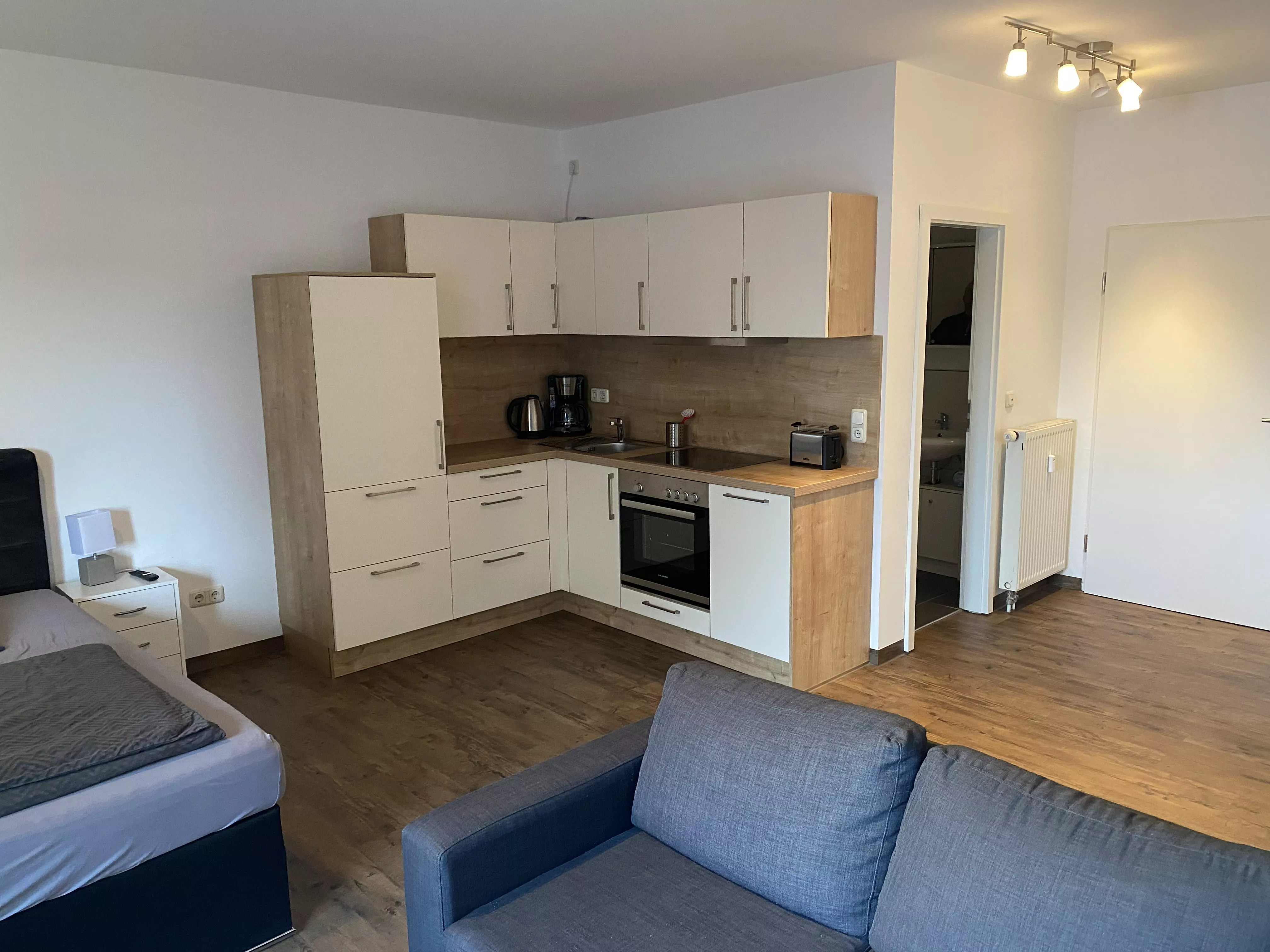 Das Zimmer ist mit einem gemütlichen Bett (1,80 x 2,00 m) eingerichtet und verfügt zusätzlich über ein Schlafsofa. Die Küchenzeile ist voll ausgestattet.